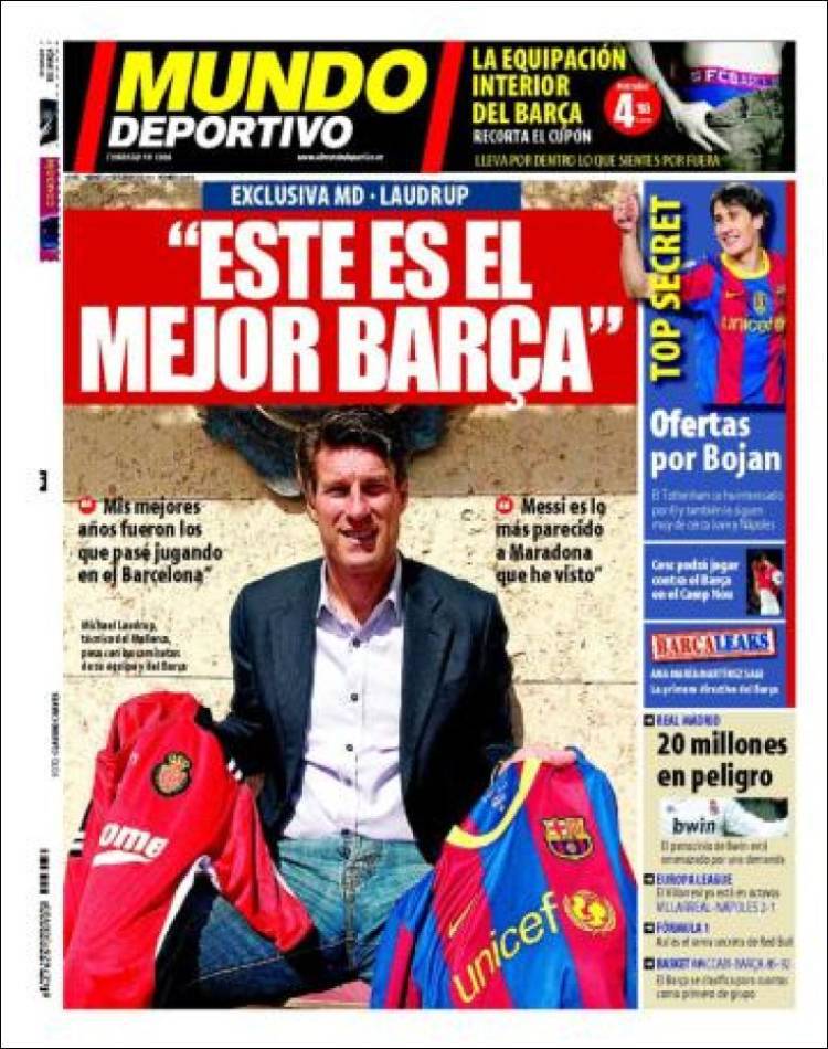 MUNDO DEPORTIVO BARCELLONA – Sul quotidiano catalano Mundo Deportivo intervista esclusiva al tecnico del Mallorca Laudrup che ha elogiato l’attuale Barcellona.