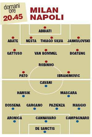 SERIE A MILAN NAPOLI PROBABILI FORMAZIONI – La sfida tra prima e seconda in classifica forse non sarà spettacolare, ma la sua importanza è evidente: Milan-Napoli potrebbe decidere le sorti del campionato. Se il Milan dovesse vincere infatti potrebbe mettere una seria ipoteca sullo scudetto, mentre se a farlo fosse il Napoli il campionato sarebbe più aperto che mai, con un’Inter inseguitrice che spera nella Leomuntada. Possibile innesto dal primo minuto di un Pato in grande spolvero per i rossoneri, mentre il Napoli deve fare i conti con la pesante assenza di Lavezzi e schiererà al suo posto con ogni probabilità il neo acquisto Mascara. Ecco le probabili formazioni in foto della Gazzetta dello Sport: