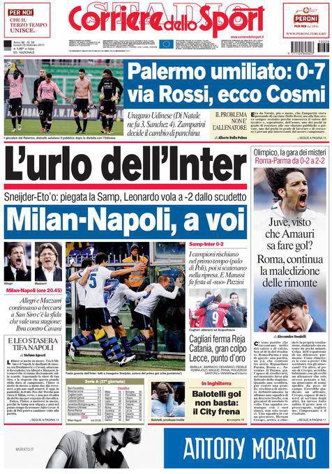 CORRIERE INTER – Anche il Corriere dello Sport parla della vittoria dell’Inter di Leonardo sul campo della Sampdoria. I nerazzurri sono a meno due dal Milan che stasera giocherà in casa contro il Napoli.