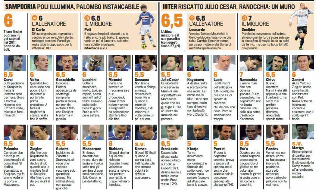 GAZZETTA VOTI PAGELLE SAMPDORIA INTER – Ecco i voti e le pagelle della Gazzetta dello Sport per il match tra Sampdoria e Inter.