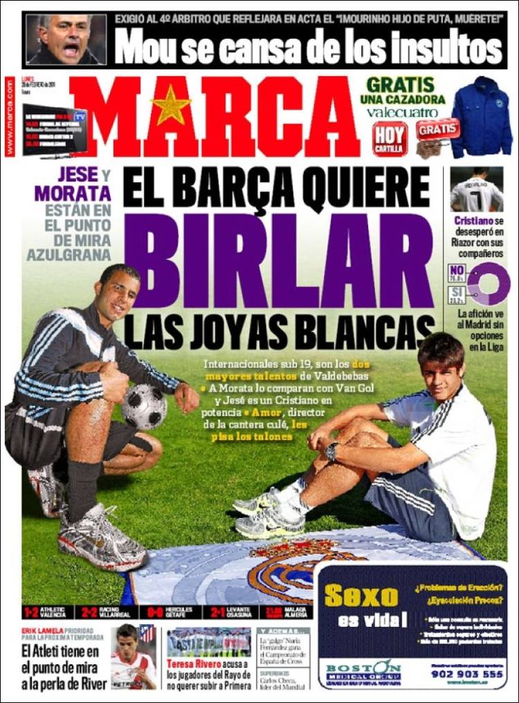 MARCA BARCELLONA REAL MADRID – Sul quotidano Marca si parla dell’offensiva del Barcellona nei confronti di due gioielli della cantera del Real Madrid Jese e Morata.