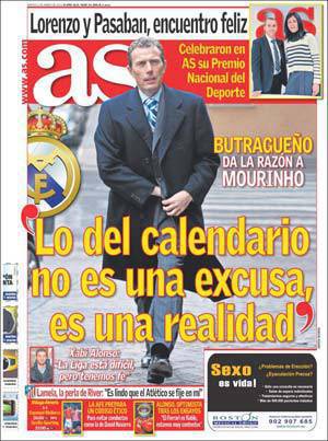 AS BUTRAGUENO REAL MADRID – Anche Butragueno, storico giocatore del Real Madrid, attualmente dirigente del club madrileno, da ragione a Mourinho per la storia dei calendari.