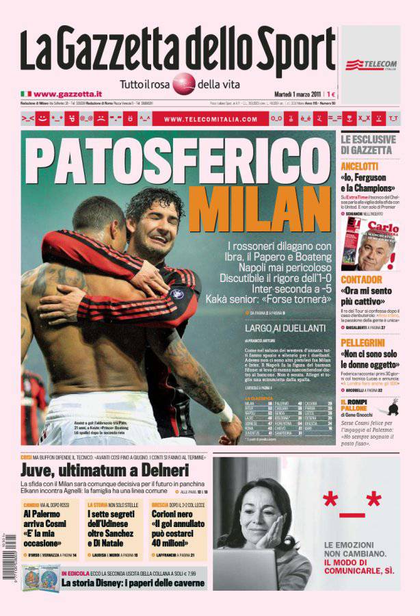 GAZZETTA MILAN – Sulla Gazzetta dello Sport si parla della vittoria del Milan contro il Napoli per tre a zero.