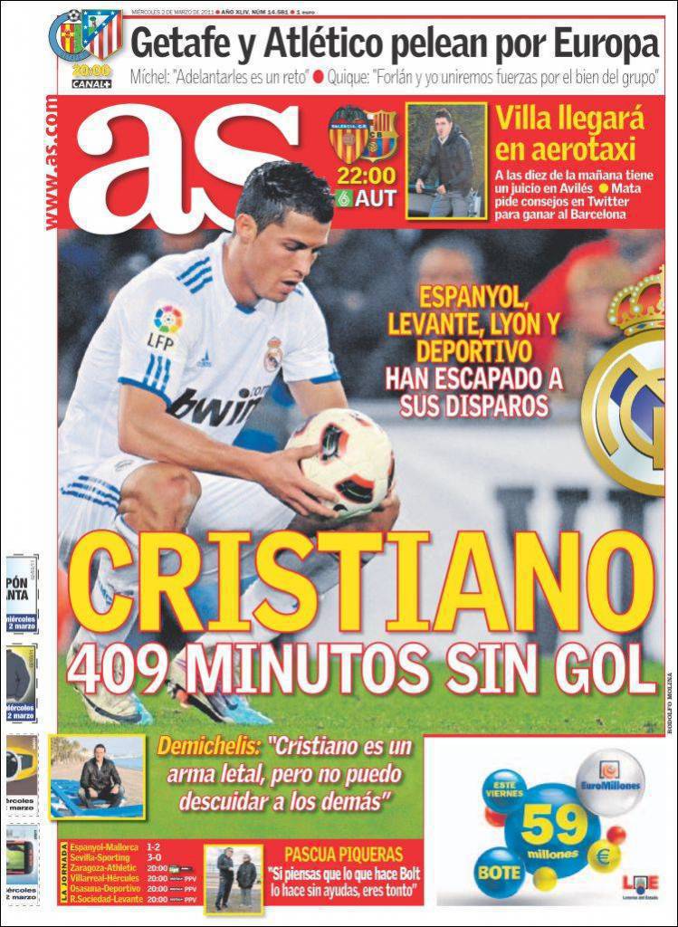 RONALDO REAL MADRID GOL – Su As invece si parla della piccola crisi di Ronaldo che non segna da 409 minuti.