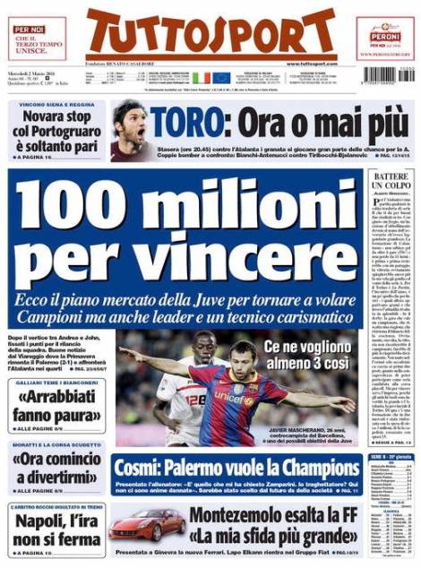 TUTTOSPORT JUVENTUS – Su Tuttosport si parla della rivoluzione Juventus con la società bianconera disposta a spendere 100 milioni di euro per rinforzare la squadra.