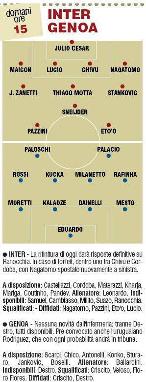 FANTACALCIO INTER GENOA PROBABILI FORMAZIONI – Domani pomeriggio l’Inter ospiterà il Genoa a San Siro. Ecco le probabili formazioni secondo il Corriere dello Sport.