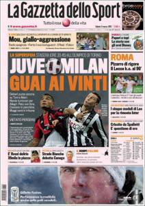 Gazzetta dello Sport: Juve-Milan, guai ai vinti 05/03/2011 di admin RASSEGNA STAMPA GAZZETTA DELLO SPORT PRIMA PAGINA JUVENTUS-MILAN – La Gazzetta dello Sport dedica la prima notizia al big match di questa sera Juventus-Milan che potrebbe costare caro a chi perde. La redazione di Calciomercatonews.com