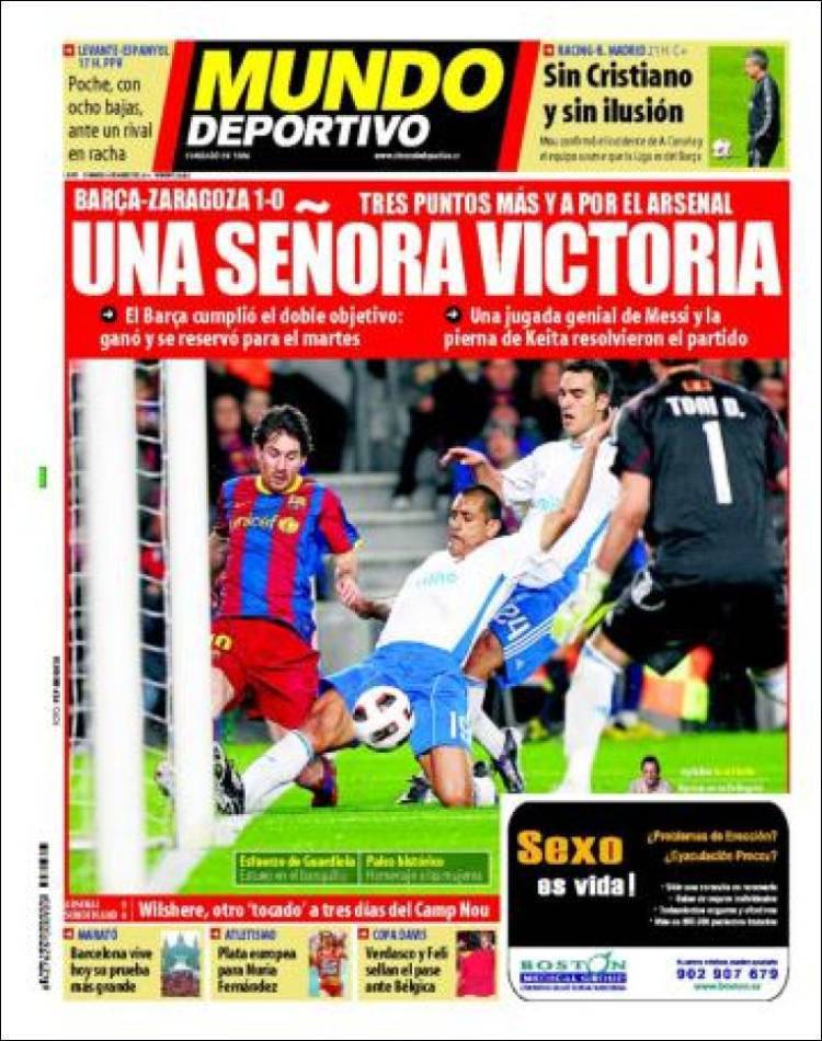 RASSEGNA STAMPA MUNDO DEPORTIVO – Il Barcellona piega il Real Saragozza con il minimo sforzo e si prepara ad affontare la sfida con l’Arsenal.