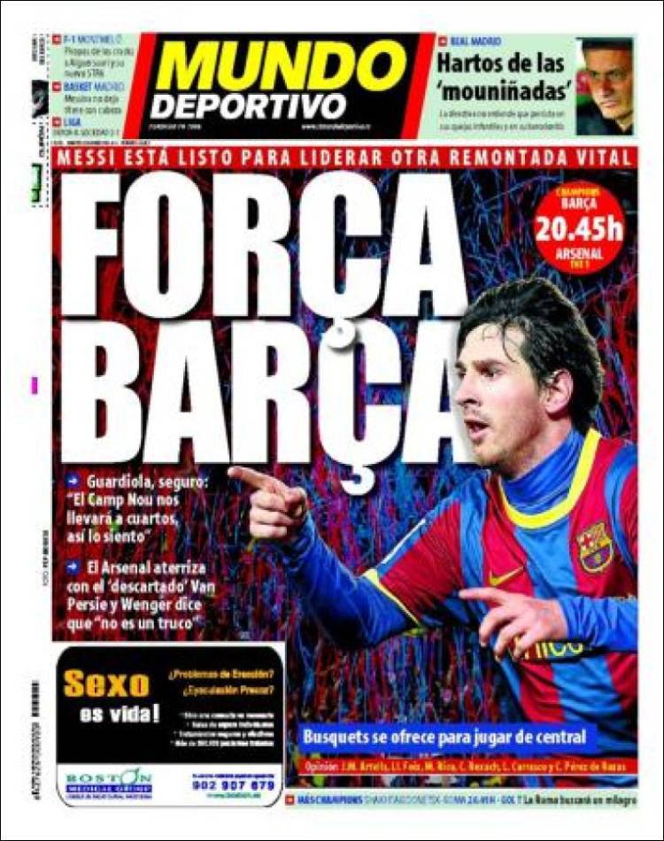 MUNDO DEPORTIVO BARCELLONA – Sul quotidiano catalano Mundo Deportivo si parla del match tra Barcellona e Arsenal in programma questa sera nel ritorno degli ottavi di finale di Champions League.