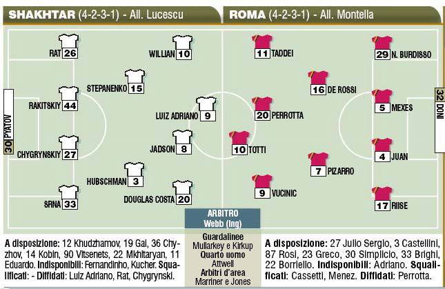 SHAKTHAR ROMA PROBABILI FORMAZIONI – Questa sera la Roma dovrà recuperare il tre a due subito all’Olimpico. Lo Shakthar di Lucescu promette battaglia. Ecco le formazioni secondo il Corriere dello Sport.