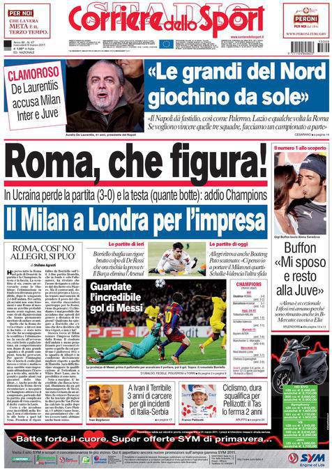 CORRIERE ROMA CHAMPIONS – Sul Corriere dello Sport si parla della sconfitta della Roma contro lo Shakthar. I giallorossi perdono tre a zero e salutano la Champions League.