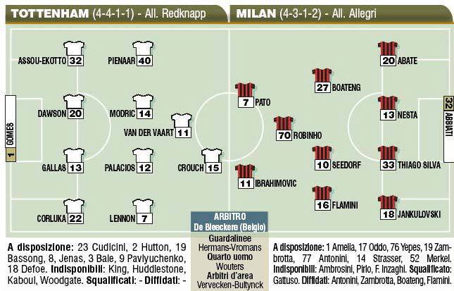 Tottenham-Milan%2C+probabili+formazioni+in+foto