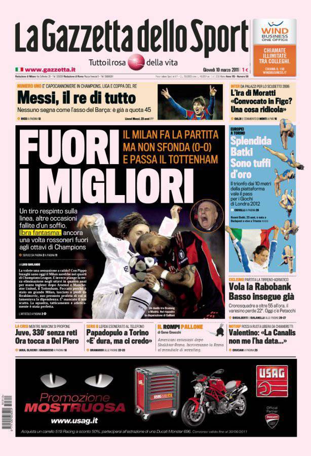 GAZZETTA MILAN TOTTENHAM – Dopo la Roma anche il Milan esce fuori dalla Champions League. I rossoneri non vanno oltre lo zero a zero e vengono eliminati.