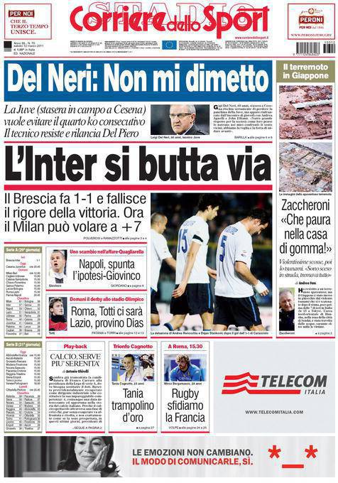 CORRIERE INTER SCUDETTO – Anche il Corriere dello Sport parla del pareggio dell’Inter a Brescia per uno a uno.