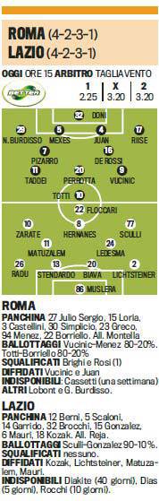 ROMA LAZIO PROBABILI FORMAZIONI – Come sempre il Derby di Roma è molto di più di una semplice partita: alle 15.00 una città intera si fermerà per guardare la partitissima della 29^ giornata. Leggiamo insieme le scelte di Vincenzo Montella ed Edy Reja, che si daranno battaglia dal primo al 90° minuto.