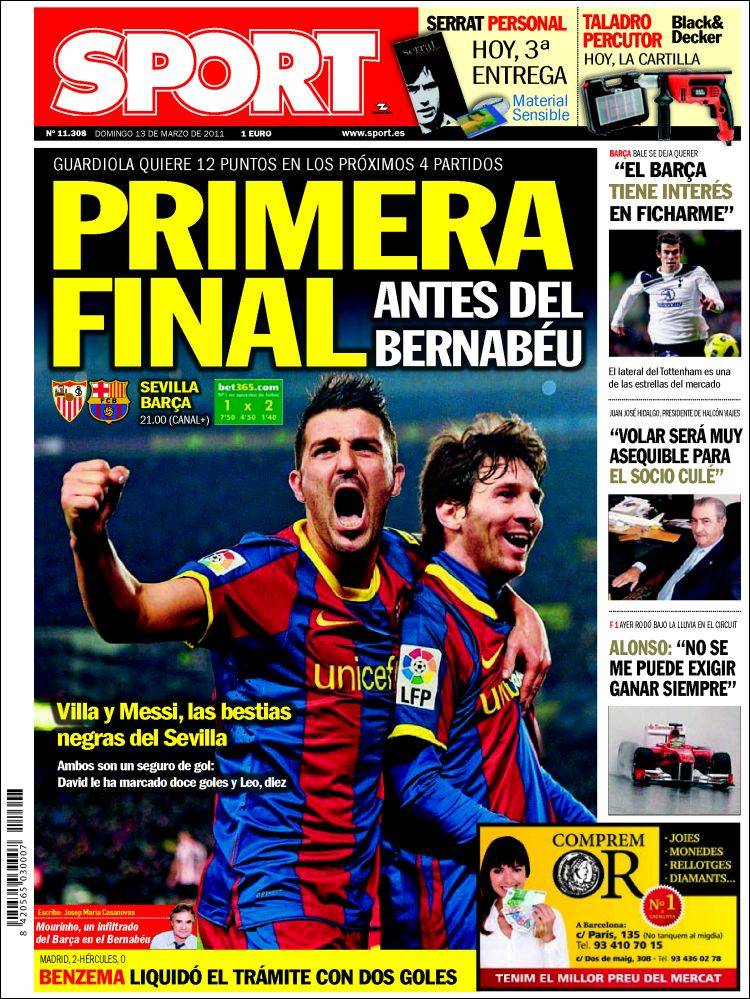 SPORT FINALE BERNABEU – Il quotidiano iberico Sport si concentra sullo scontro questa sera tra Barcellona e Siviglia che potrebbe consegnare davvero un’ottima fetta del campionato.