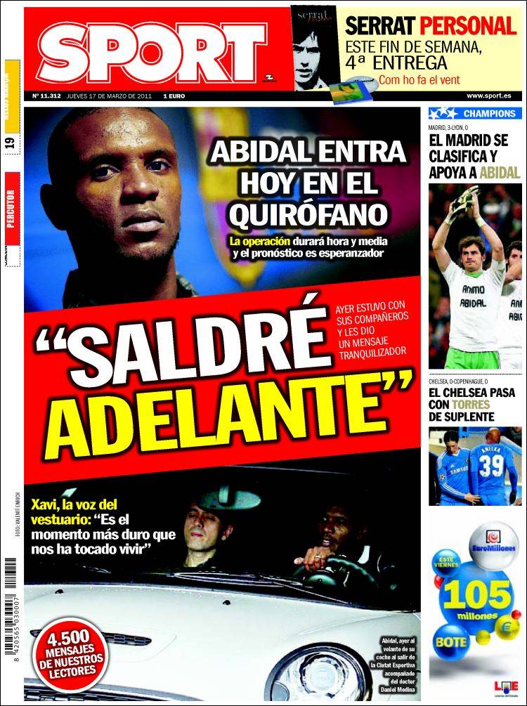 SPORT ABIDAL – Anche l’altro quotidiano catalano Sport carica il terzino del Barcellona Abidal che verrà operato per un tumore al fegato.
