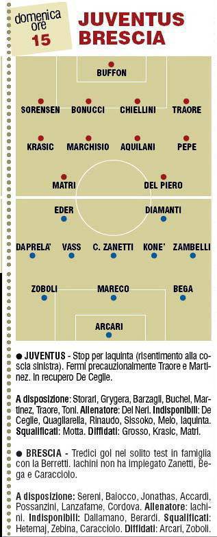 FANTACALCIO JUVENTUS BRESCIA PROBABILI FORMAZIONI – La Juventus ospiterà in casa il Brescia cercando di rilanciarsi in campionato. Il tecnico Delneri confermerà il duo d’attacco formato da Del Piero e Matri che tanto bene ha fatto a Cesena. Ecco le probabili formazioni del Corriere dello Sport.