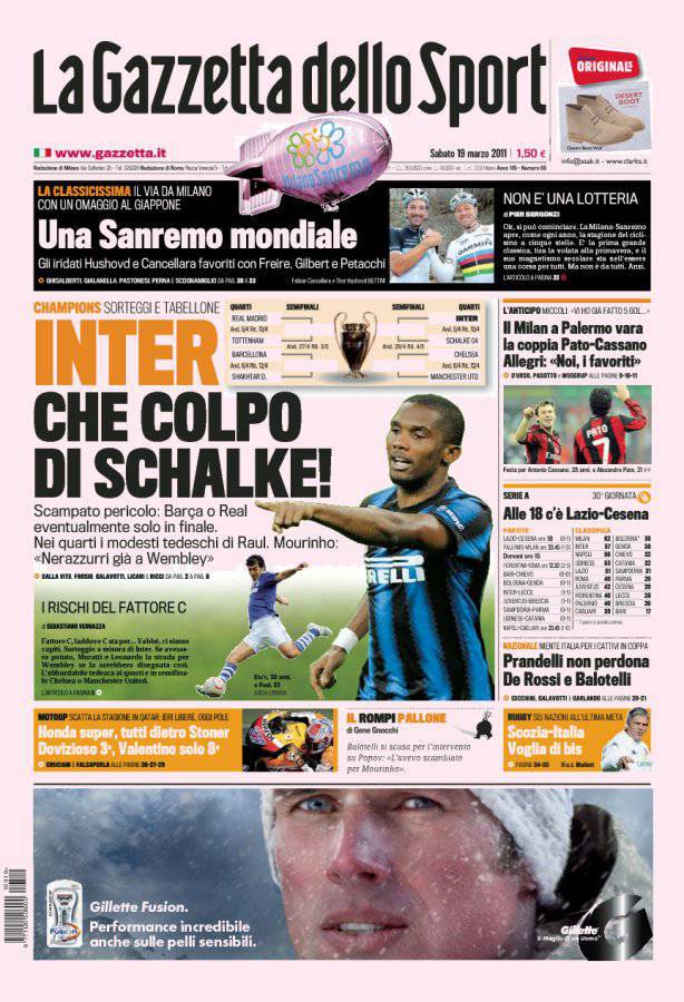 GAZZETTA INTER CHAMPIONS – Sulla Gazzetta dello Sport si parla del sorteggio Champions dell’Inter che ha pescato lo Schalke nei quarti di finale.