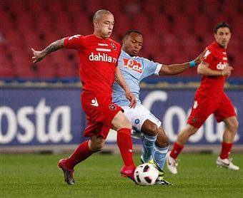 Napoli (3-4-2-1): De Sanctis 6; Santacroce 5,5, Cannavaro 5, Ruiz 6; Zuniga 6, Yebda 6, Pazienza 6, Dossena 6 (37′ st Aronica s.v.); Hamsik 6,5 (33′ st Mascara 6,5), Lavezzi 6,5; Cavani 7. (1 Iezzo, 25 Cribari, 80 Blasi, 77 Sosa, 99 Lucarelli C.). All.: Mazzarri 6,5.