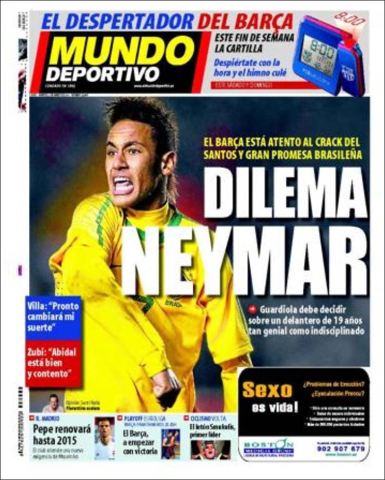 MUNDO DEPORTIVO NEYMAR – Sul quotidiano catalano Mundo Deportivo si parla del futuro di Neymar, stella brasiliana del Santos che piace anche al Barcellona.