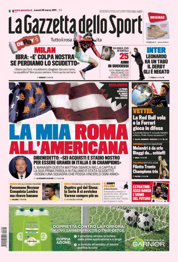 GAZZETTA ROMA DIBENEDETTO – Sulla Gazzetta dello Sport intervista esclusiva a Thomas DiBenedetto, nuovo proprietario della Roma.