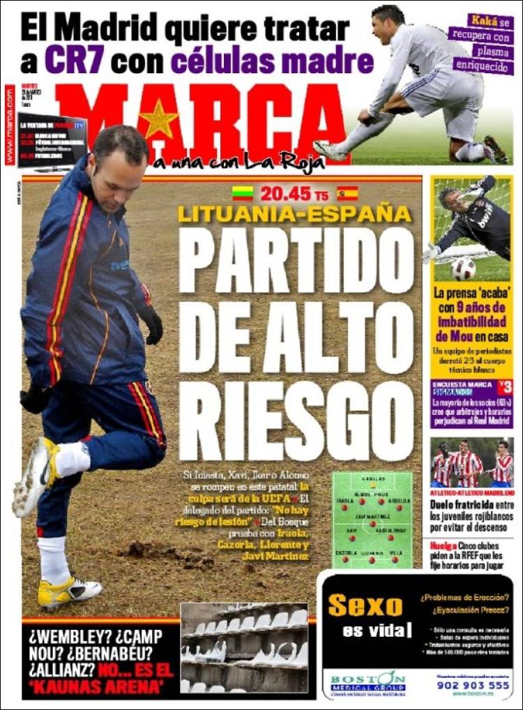 MARCA LITUANIA SPAGNA – Sul quotidiano spagnolo Marca si parla del match tra Lituania e Spagna con gli spagnoli che protestano per le pessime condizioni del campo da gioco.