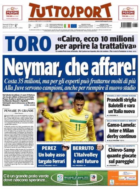 TUTTOSPORT NEYMAR – Su Tuttosport si parla di Neymar, talento brasiliano che piace alla Juventus.