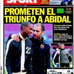 Sport: Promesso il trionfo ad Abidal 02/04/2011 di Ruggieri SPORT ABIDAL BARCELLONA – Anche l’altro quotidiano catalano Sport parla della visita di Abidal ai compagni. I compagni di squadra gli hanno promesso la vittoria contro il Villareal. Claudio Ruggieri – www.calciomercatonews.com