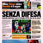 GAZZETTA INTER CHAMPIONS – Sulla Gazzetta dello Sport si parla della clamorosa sconfitta dell’Inter in casa contro lo Schalke per 5 a 2 che mette fine ai sogno Champions per i nerazzurri.