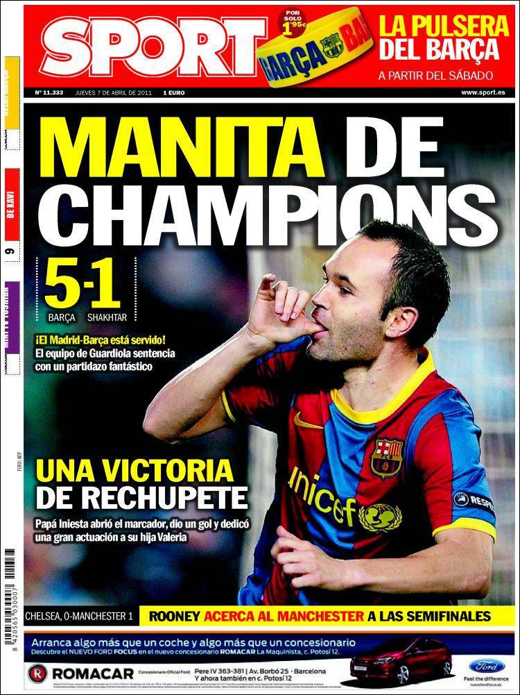 SPORT CHAMPIONS MANITA – Sul quotidiano catalano Sport si parla della grande vittoria del Barcellona contro lo Shakhtar per cinque a uno.