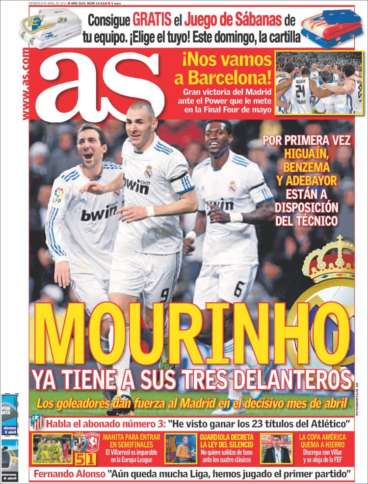 AS MOURINHO ATTACCANTI – Sul quotidiano As si parla del recupero di Higuain e Benzema per la prossima sfida di Champions. Mourinho avrà a disposizione tutti e tre gli attaccanti.