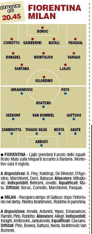 FANTACALCIO FIORENTINA MILAN PROBABILI FORMAZIONI – Il Milan capolista dopo la vittoria nel derby vorrà continuare la sua cavalcata verso lo Scudetto. Domenica sera posticipo importante sul campo della Fiorentina. Ecco le formazioni secondo il Corriere dello Sport.