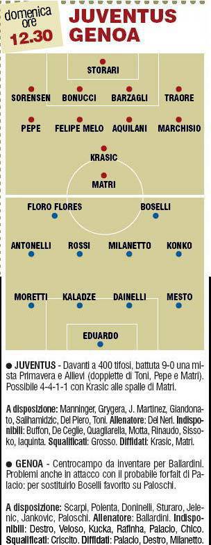 FANTACALCIO JUVENTUS GENOA PROBABILI FORMAZIONI – La Juventus giocherà domenica alle 12.30 contro il Genoa e cercherà di continuare la striscia positiva di risultati per avvicinarsi al quarto posto che è distante 8 punti. Ecco le formazioni secondo il Corriere dello Sport.