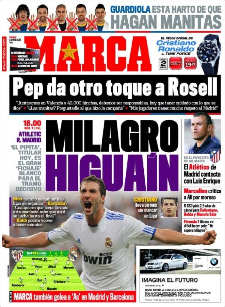 MARCA HIGUAIN REAL MADRID – Sul quotidiano spagnolo Marca si parla di Higuain, attaccante argentino che ha recuperato dai problemi fisici alla schiena.
