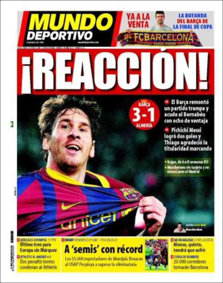 EL MUNDO DEPORTIVO BARCELLONA – Il quotidiano catalano El Mundo Deportivo dedica la prima al Barcellona sottolineando la bella vittoria dei blaugrana contro l’Almeria.