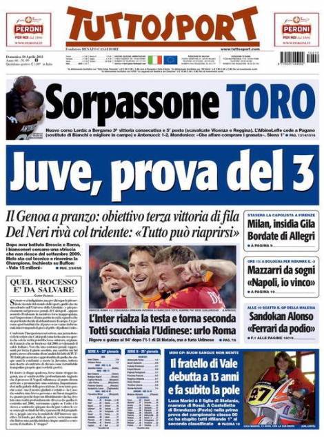 TUTTOSPORT JUVENTUS – Il quotidiano torinese Tuttosport chiama la terza vittoria di fila della Juventus. I bianconeri ci proveranno contro il Genoa alle ore 12.30.