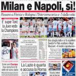 CORRIERE MILAN NAPOLI – Sul Corriere dello Sport vengono esaltate le prestazioni di Milan e Napoli che ieri hanno vinto i loro rispettivi match contro Fiorentina e Bologna.