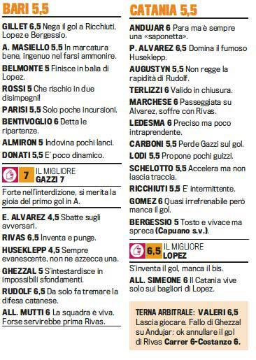 FANTACALCIO BARI CATANIA VOTI PAGELLE GAZZETTA – Ecco i voti e le pagelle della Gazzetta dello Sport per quanto riguarda il match tra Bari e Catania.