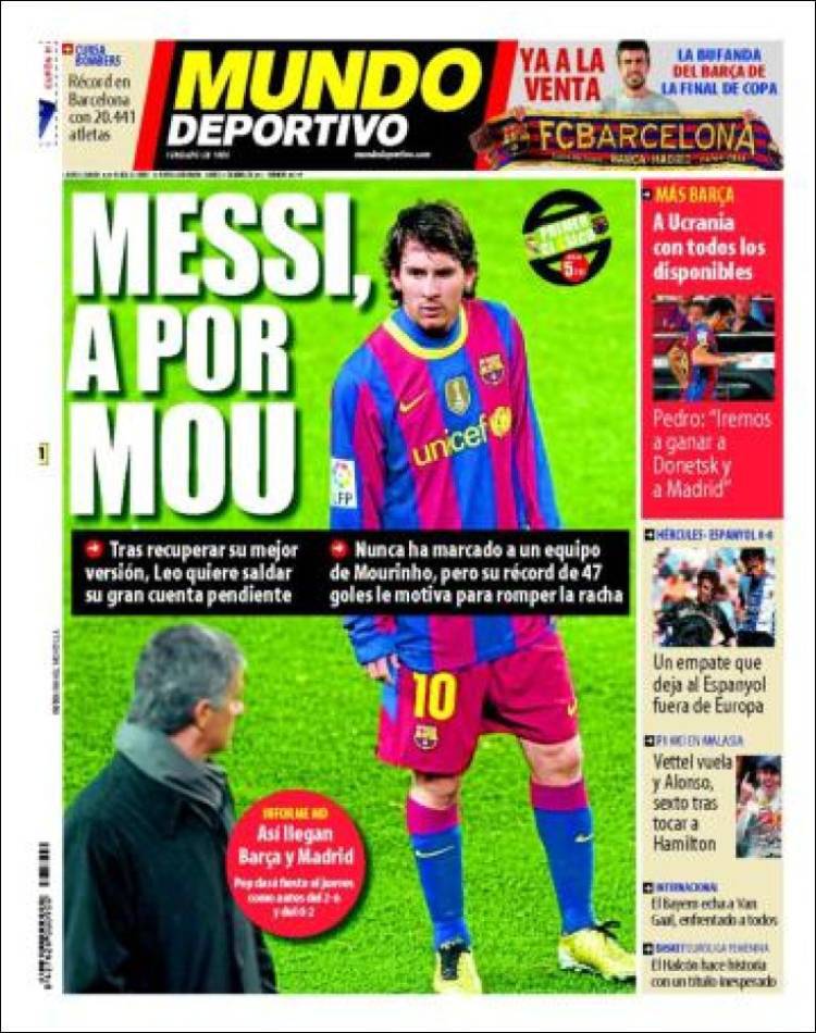 MUNDO DEPORTIVO MESSI MOURINHO – Sul quotidiano Mundo Deportivo si parla di Lionel Messi che non ha mai segnato un gol in Champions alle squadre di Mourinho.