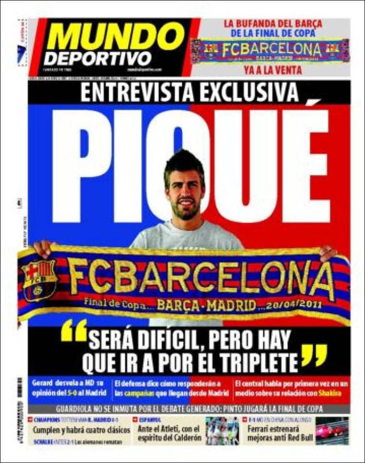 MUNDO DEPORTIVO PIQUE’ BARCELLONA – Sul quotidiano catalano Mundo Deportivo intervista esclusiva a Piquè del Barcellona che ha dichiarato di puntare al triplete.