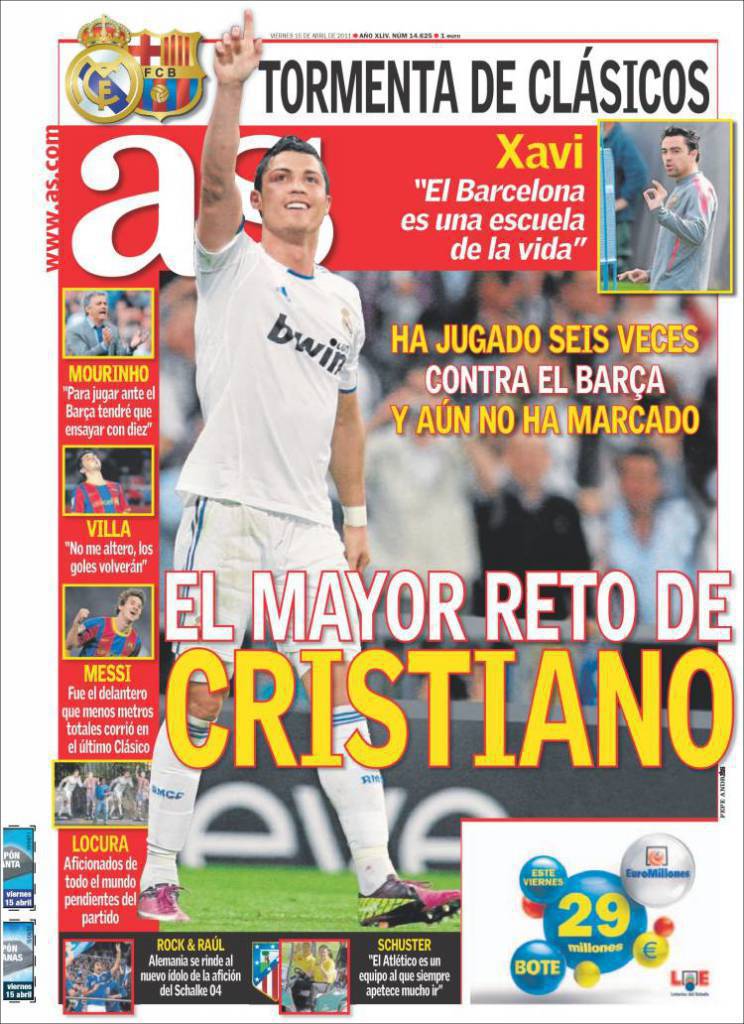 AS RONALDO REAL MADRID – Sul quotidiano As si parla di Cristiano Ronaldo che contro il Barcellona non ha mai segnato in carriera.