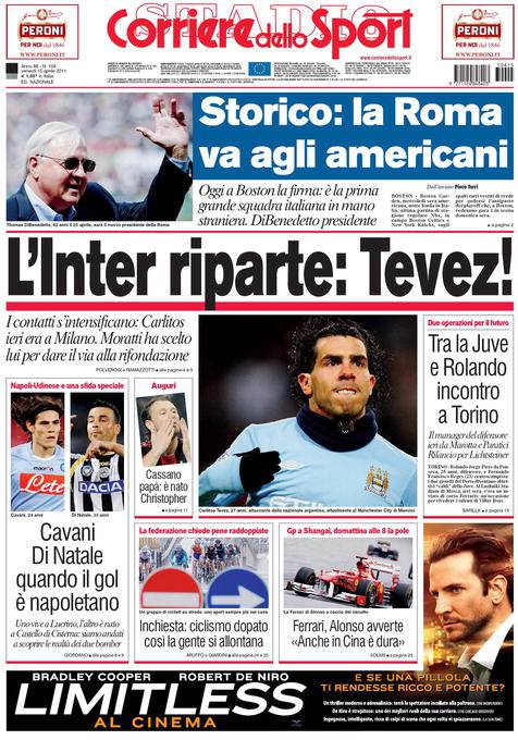 CORRIERE INTER TEVEZ – La rifondazione dell’Inter parte da Carlitos Tevez, centravanti argentino del Manchester City che ieri è stato visto nuovamente a Milano.