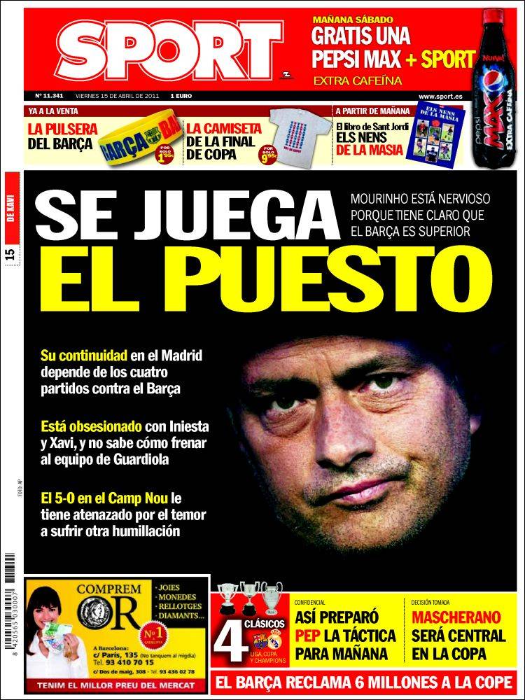 SPORT MOURINHO REAL MADRID – Sul quotidiano catalano Sport si parla di Mourinho che si giocherà la permanenza a Madrid dopo le quattro sfide contro il Barcellona.