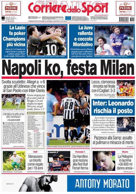 CORRIERE NAPOLI MILAN – Anche il Corriere dello Sport parla della sconfitta del Napoli in casa contro l’Udinese che proietta il Milan alla conquista dello Scudetto.