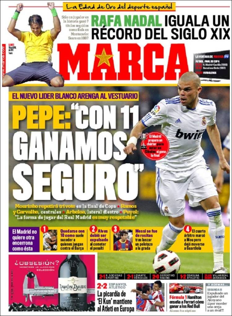MARCA PEPE REAL MADRID – Sul quotidiano spagnolo Marca il difensore portoghese del Real Madrid Pepe parla delle prossime sfide contro il Barcellona.