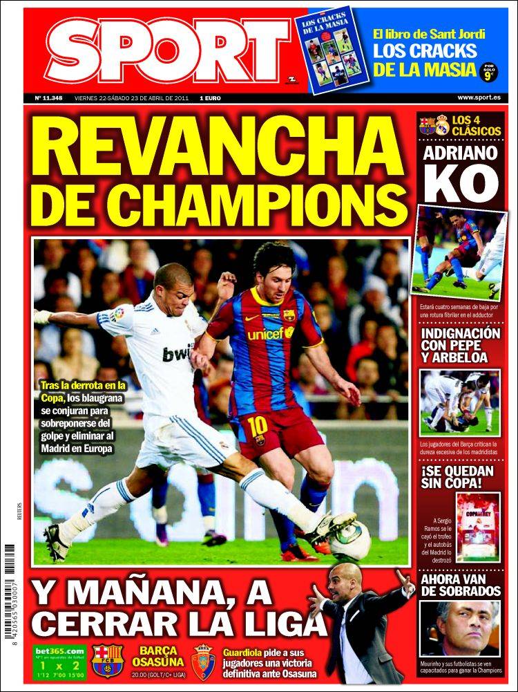 RASSEGNA STAMPA SPORT BARCELLONA – I catalani di Sport caricano il Barcellona in vista della sfida Champions contro gli odiati rivali del Real Madrid.