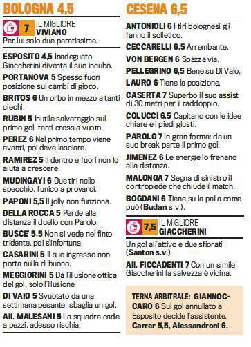 FANTACALCIO BOLOGNA-CESENA, VOTI PAGELLE GAZZETTA DELLO SPORT – I voti e le pagelle Gazzetta dello Sport della gara del Dall’Ara fra Bologna e Cesena. Il derby dell’Emilia Romagna si è concluso con il risultato di 2 a 0 in favore dei bianconeri. I rossoblu devono lottare per non retrocedere.