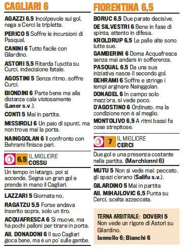 FANTACALCIO CAGLIARI-FIORENTINA, VOTI PAGELLE GAZZETTA DELLO SPORT – I voti e le pagelle Gazzetta dello Sport della gara del Sant’Elia fra Cagliari e Fiorentina vinta dai Viola con il risultato di 2 a 1.
