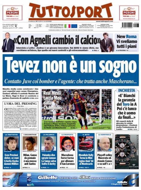 TUTTOSPORT TEVEZ JUVENTUS – Su Tuttosport si parla del calciomercato Juventus con i bianconeri che sognano l’arrivo di Tevez.
